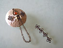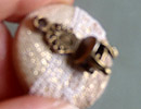 椅子チャームの脚の部分にマルカンを通し、チェーンを通す。ここでは左右両サイドと、前の部分にチェーンを取り付けた。