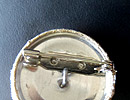 くるみボタンの裏に、ブローチピンをボンドで貼りつける。ブローチまたはヘアゴムとして2WAYで使用できる。