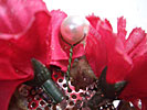 カーネーションの間にワイヤリングしたパールをつける。