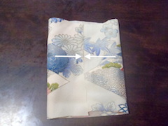 生地を裏返し、両端から中央に向かって折る。