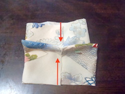 次は下の端を持ち、中央に寄せる。