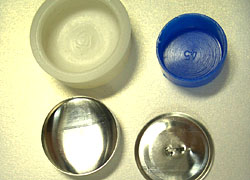 ホルダーに生地がはまらない場合は、糸玉などをボタンの上にのせて押し込む。