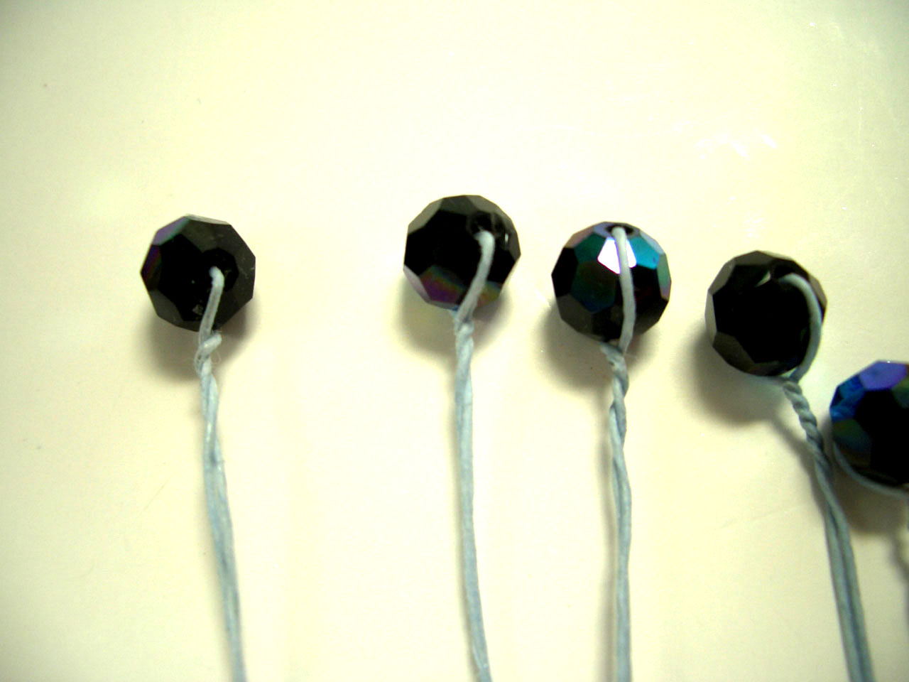 スワロフスキーはワイヤーの中央に通す。
