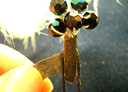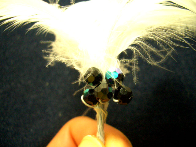 スワロ下から2センチの位置で、スワロと羽根のワイヤーをカットしてそろえる。