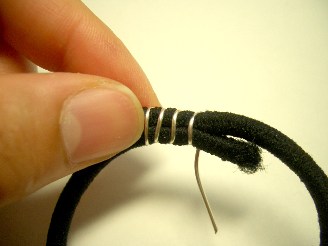 ワイヤーを使い、ヘアゴムの重なっている部分を