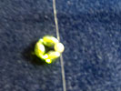 もう一度、モチーフ下に出たテグスは、下側の横向きインドビーズと丸小を通して左下端にテグスを出しておく(A)。