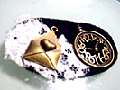 黒フェルトの表面にチャームを配置する。少量のエポキシボンドを塗っておくとよい。