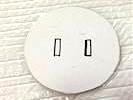 丸く切った厚紙の中央にペンでゴムを通す穴を書いておく。カッターでくり抜いておく。