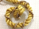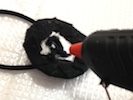 太い紐をクルクルとまとめる。温めたグルーガンで少しずつ固定しながらまとめると良い。