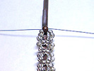 新たに追加した丸小ビーズ2個で交差する。これをあと5回くり返す。(輪は7つ)