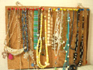 やや厚みのあるコルクボードに画鋲を等間隔にさします。そこにネックレスやブレスレットをひっかけます。