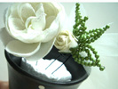 小さめの缶・カゴなどはコサージュを入れるのにぴったりです。