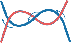 右側テグスを左側テグスの上にもってくる。