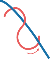 右側テグスを左側テグスの下から反対方向へとおす。