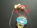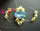 写真?右側に出たテグスに黄色のスワロフスキー3個とおす。