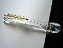 テグスの中央に黄色のスワロフスキーを3個とおす。