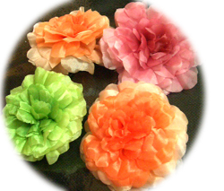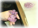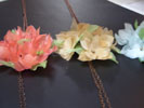 アートフラワーの花びらをたくさん重ねて、お花のコサージュをつくりました。