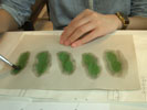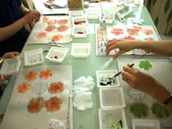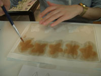 色染め、コテあて、組み立て・・・と細かい工程をひとつひとつ