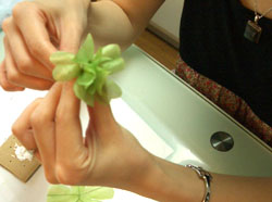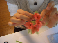 今回は基本的なテクニックを使ってコサージュづくりをしました。
