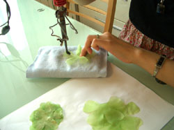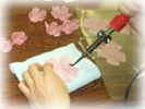 今回は花びらの枚数が多いので、カットが大変です。型紙からずれないように気をつけて・・・。