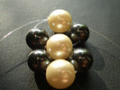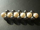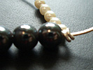 左右のテグスに黒パールを各ひとつとおし、白パールで交差する。(a)