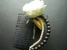 余りのテグスかワイヤーで造花の茎とコームを巻きつける。