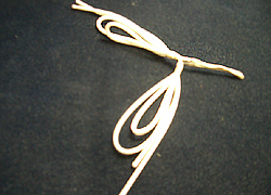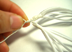 うす絹テープ(白)に少量のボンドをつけながら巻く。
