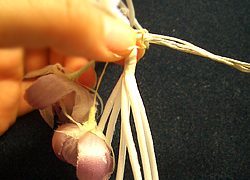 造花2(2本)は長さに長短をつけて、茎を巻きつける。