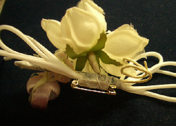 1)リボンで輪を2〜3個つくり、 両端はたらす。