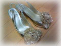 サテン生地・うす絹生地のコサージュとリボンをたくさん取りつけています。