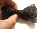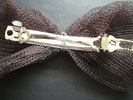 ステンレスワイヤー5cmでバレッタとリボンの生地を結び固定させる。