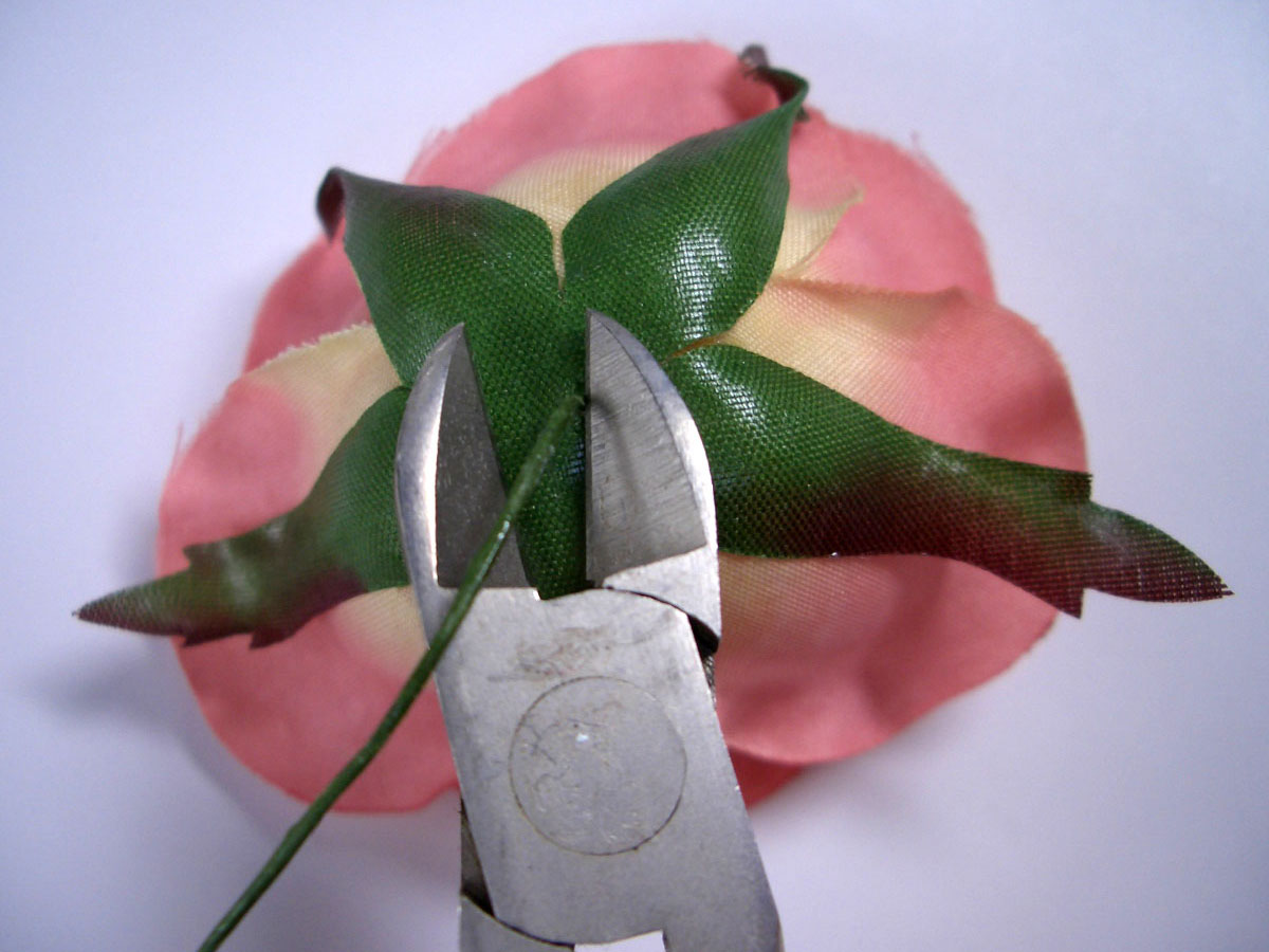 ニッパーをつかい、“がく”(花びらをささえる緑の部分)の下で茎を切りはなす。