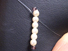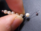 ビーズ1個をとおし、パールにテグスをもどしていく。