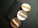 ピンクのシェルを中央に配置して、グルーガンでコームにとりつける。