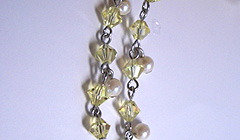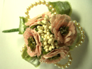 造花と同系色のスワロフスキーやパールでつくるとよいでしょう。