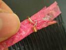 ここではピンク色に染めたうす絹を貼り付けた。