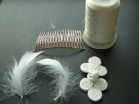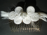 白糸でチャイナボタンをコームにぬいつける。